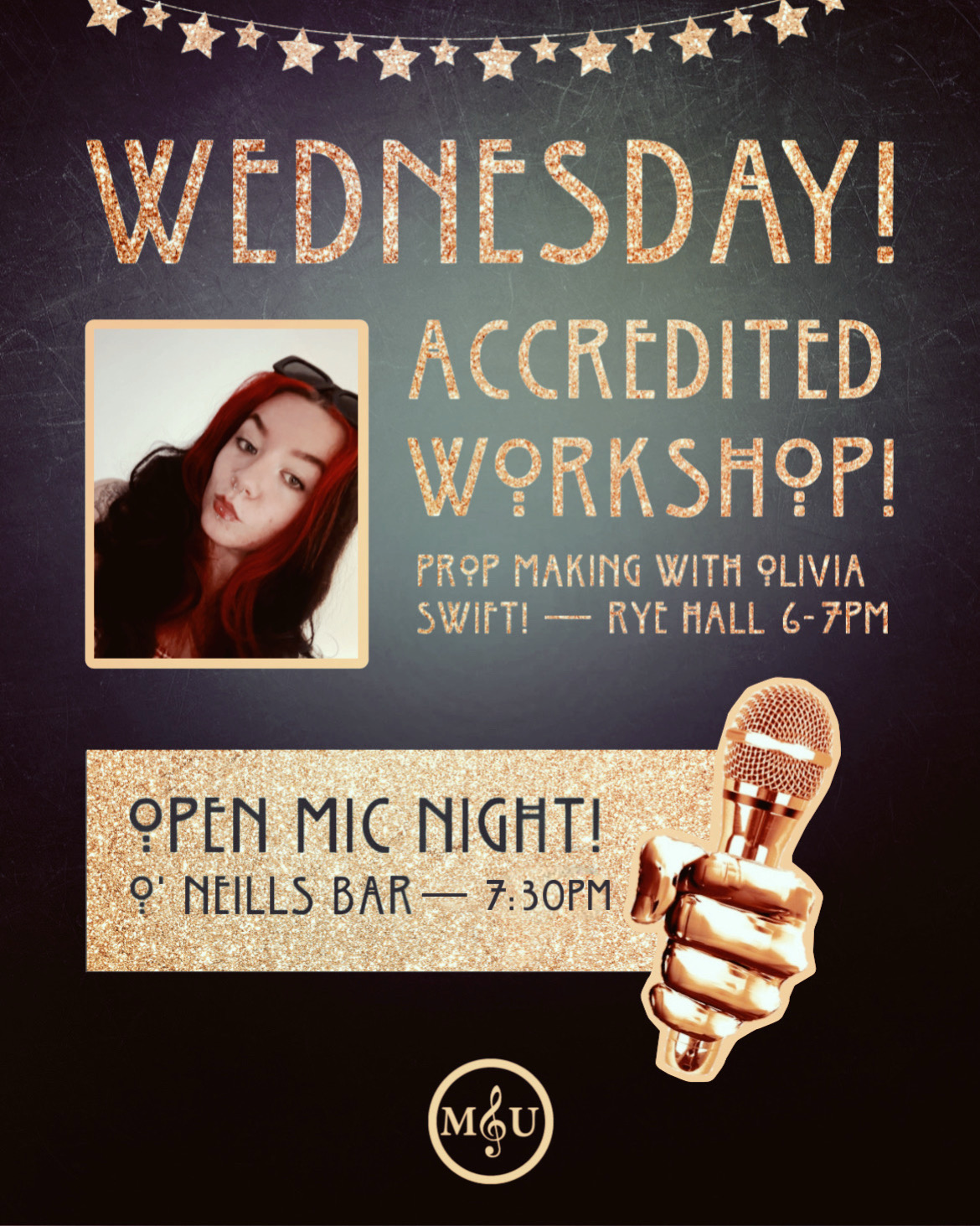 | MUMS have a wide range of activities that cater to all audiences! Outside of our productions, we hold weekly events such as open mics, quizzes and karaoke nights! We also hold weekly commuter events and workshops to make sure everyone can get involved! |