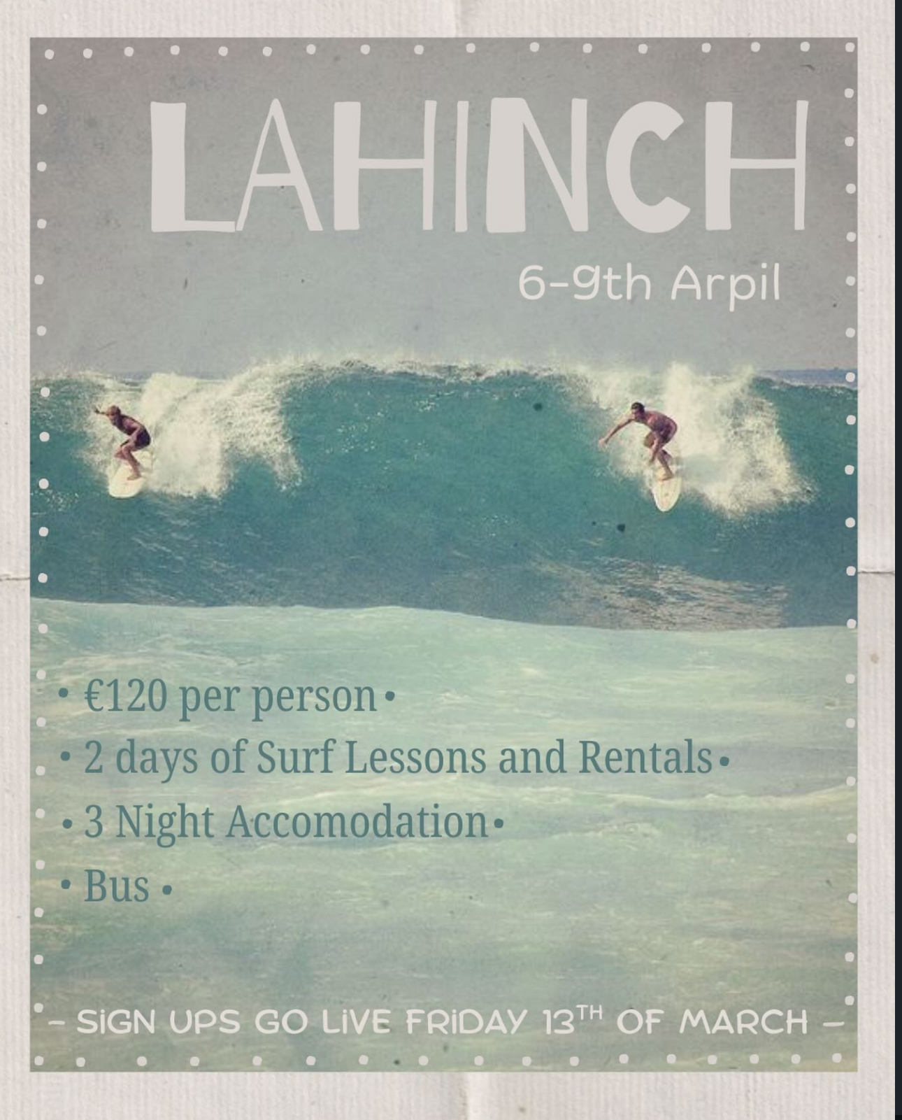 We are heading down to Lahinch from the 6th-9th of April!!