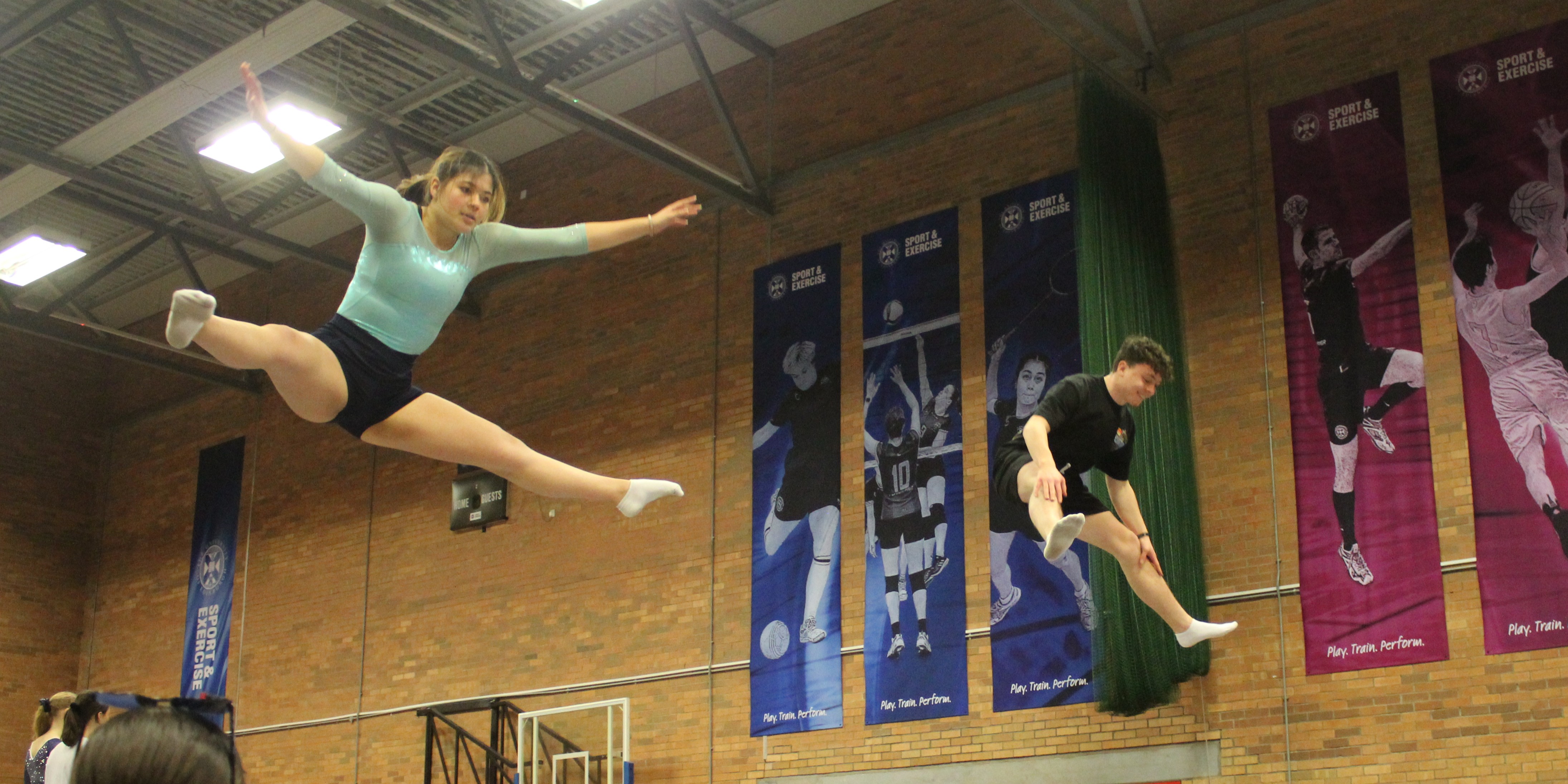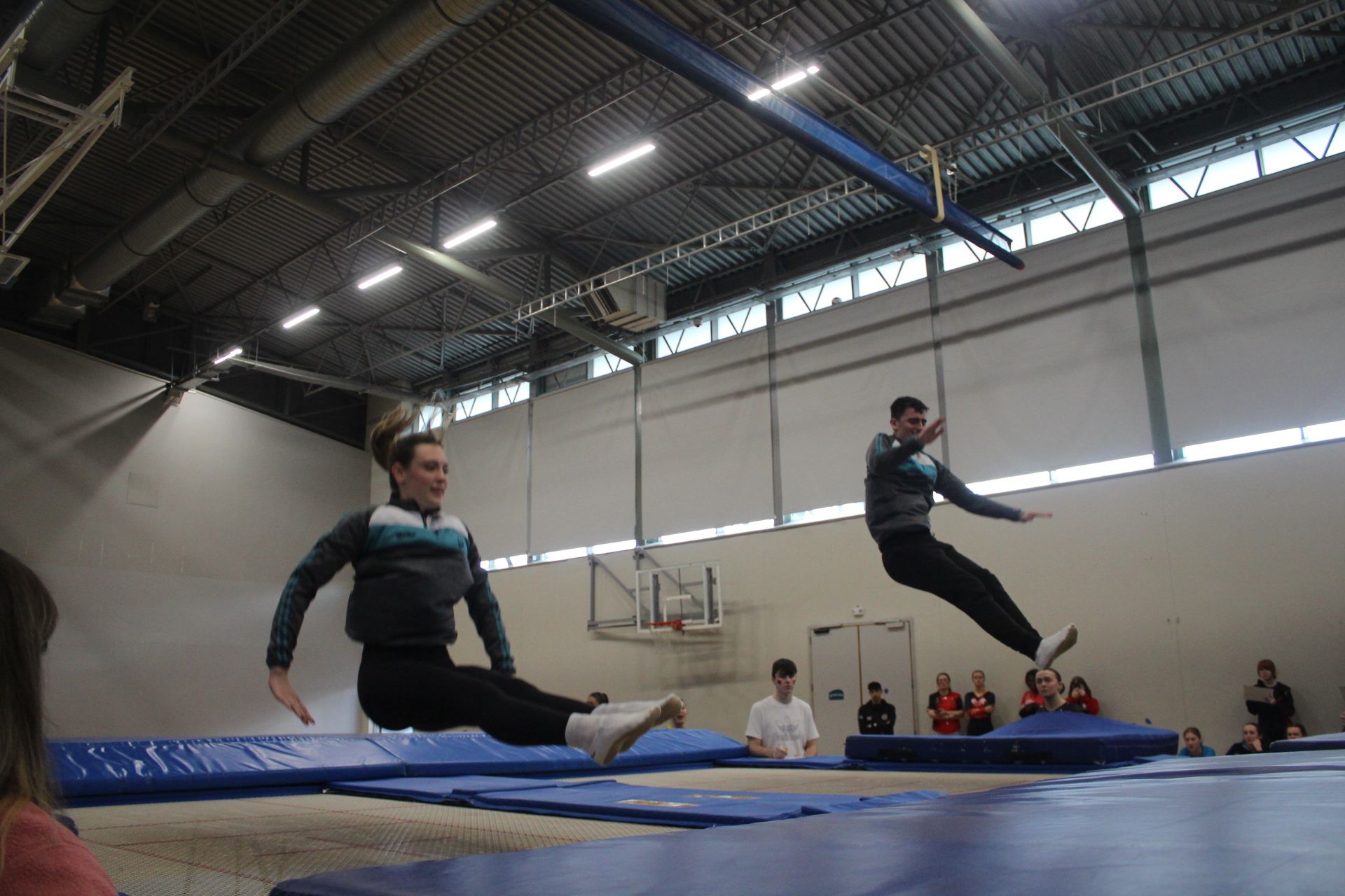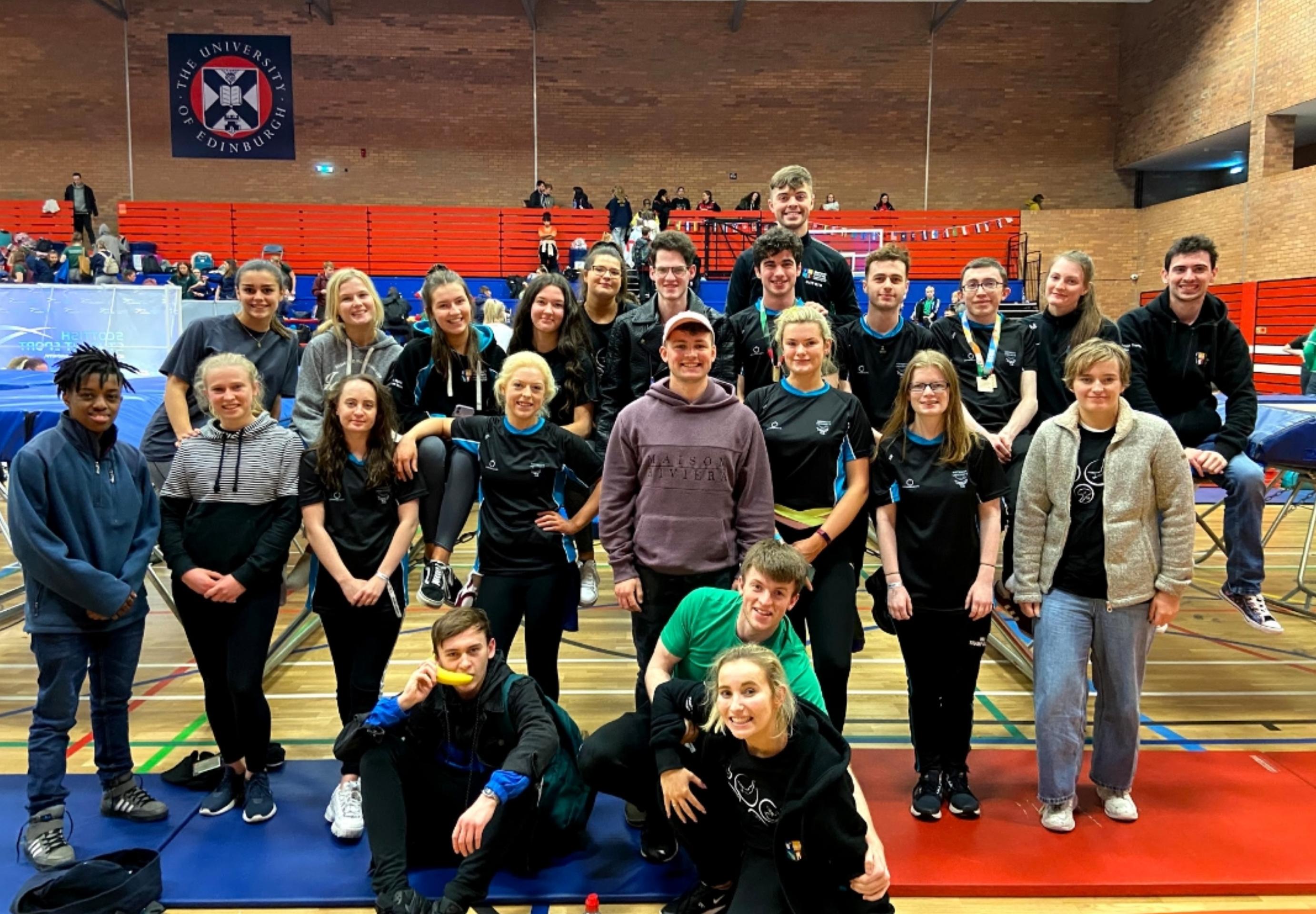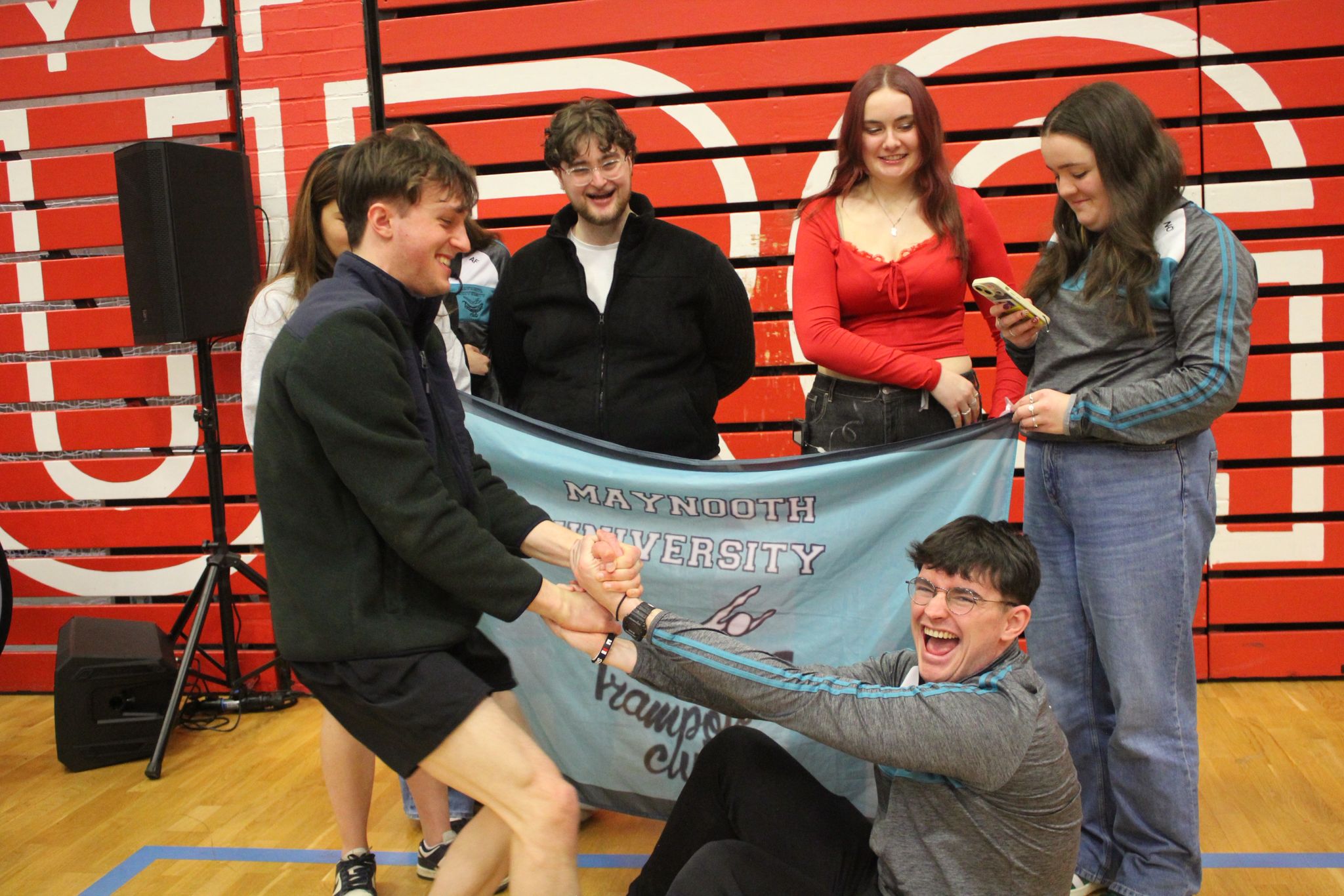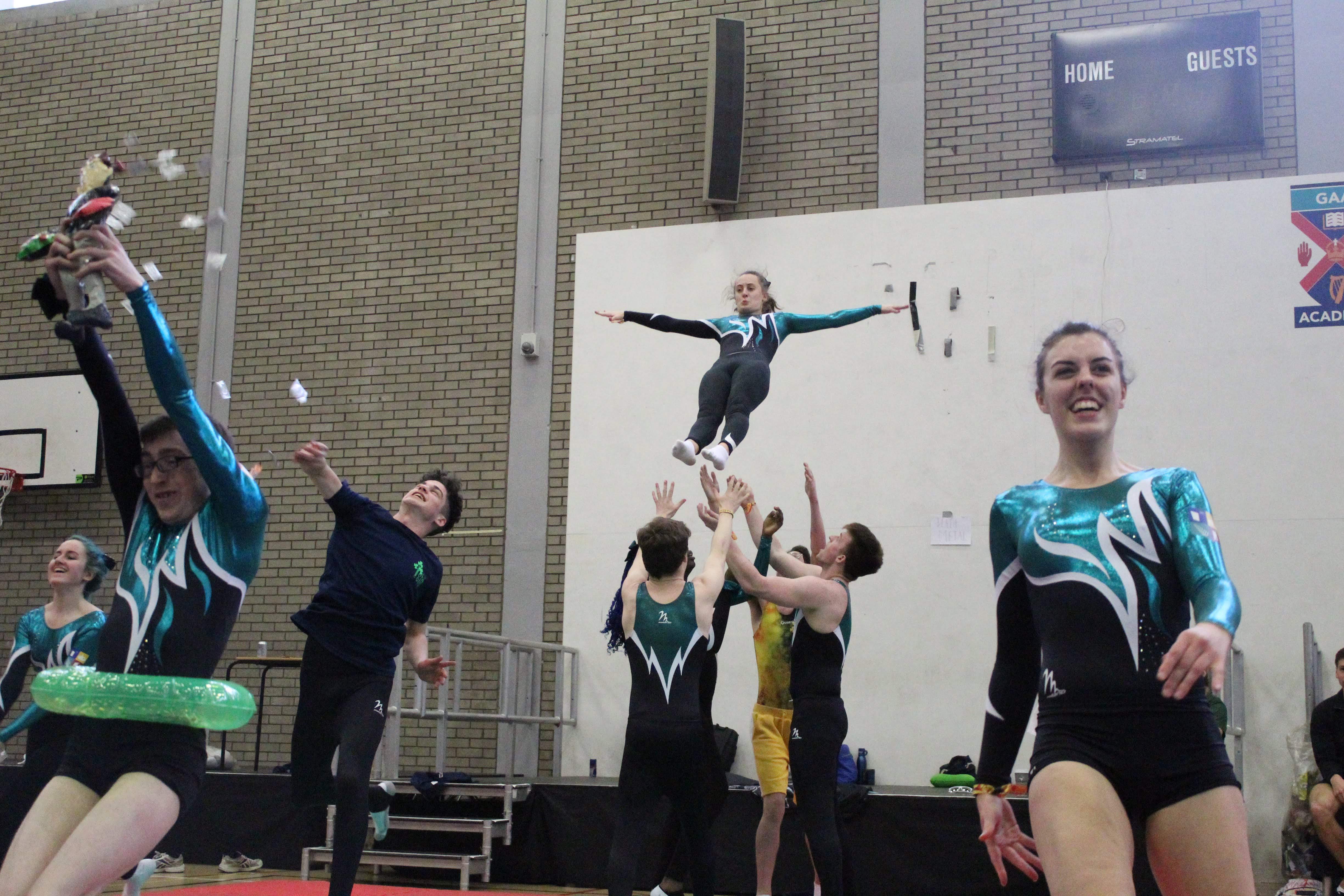 We are Maynooth University Trampoline Club! Welcome to MUTC, Maynooth's only stop for Gymnastic Trampolining! Fancy traveling across the country and abroad to compete for your University? Want to give a unique sport a try for the very first time? Or do you just want to come down and have the craic, party hard, and make some of the best memories you'll ever have in college? Maynooth Tramp's is the place for you! With Competitions from Dublin to Edinburgh, we travel far and wide to compete, weekly events and Crazy Nights Out to make your time with us the best possible, and with our seasoned coaches and daily training sessions to attend, you can be sure that this will be a once in a lifetime opportunity! No experience is necessary to join, we cater all our Training Sessions to suit YOUR needs; from total Novices all the way to seasoned Elite-Pros!