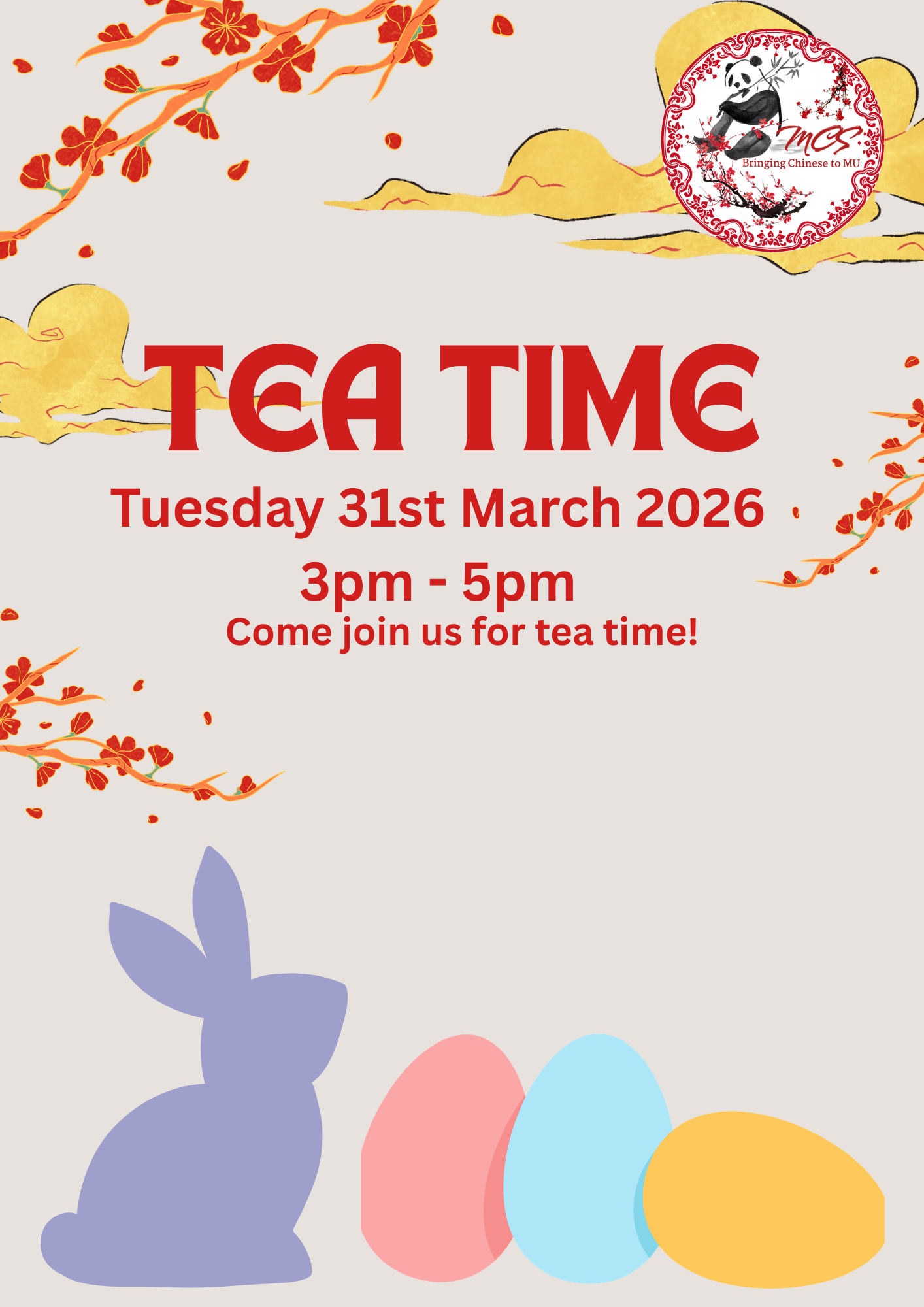 Come join us for tea time the week before the Easter Holiday!!
