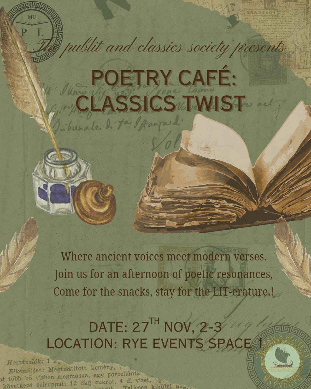 Poetry Cafè in collaboration with the Publication and Literary Society !! Join us for a chat and exchange of ideas, reading some poems together :)) We will provide snacks and tea for a real cozy afternoon!!