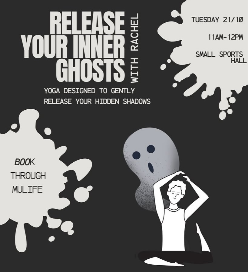 Join Rachel in the Small Sports Hall for a restorative session designed to help you gently release your inner ghosts. Through slow, mindful stretches, deep relaxation, and a guided meditation, you’ll create space to let go of tension, stress, and worries. Expect soft, eerie ambient music to embrace the spooky season while recharging your body and mind.