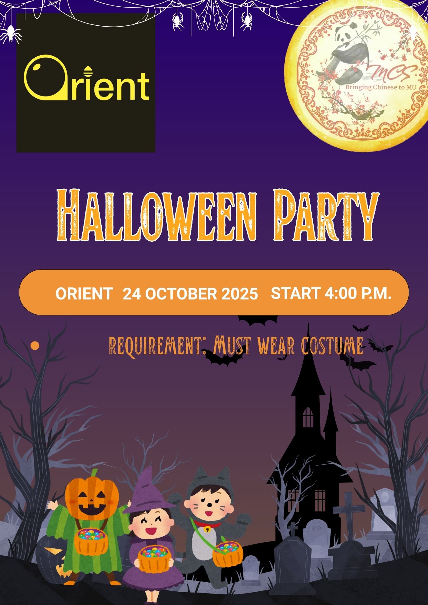 We will be hosting a Halloween Party at Orient to celebrate the holiday with the members of the society. We will start with having dinner at Orient and then we will play some games with some prizes for the winners. This is just a socialising event with everyone chatting and having fun!