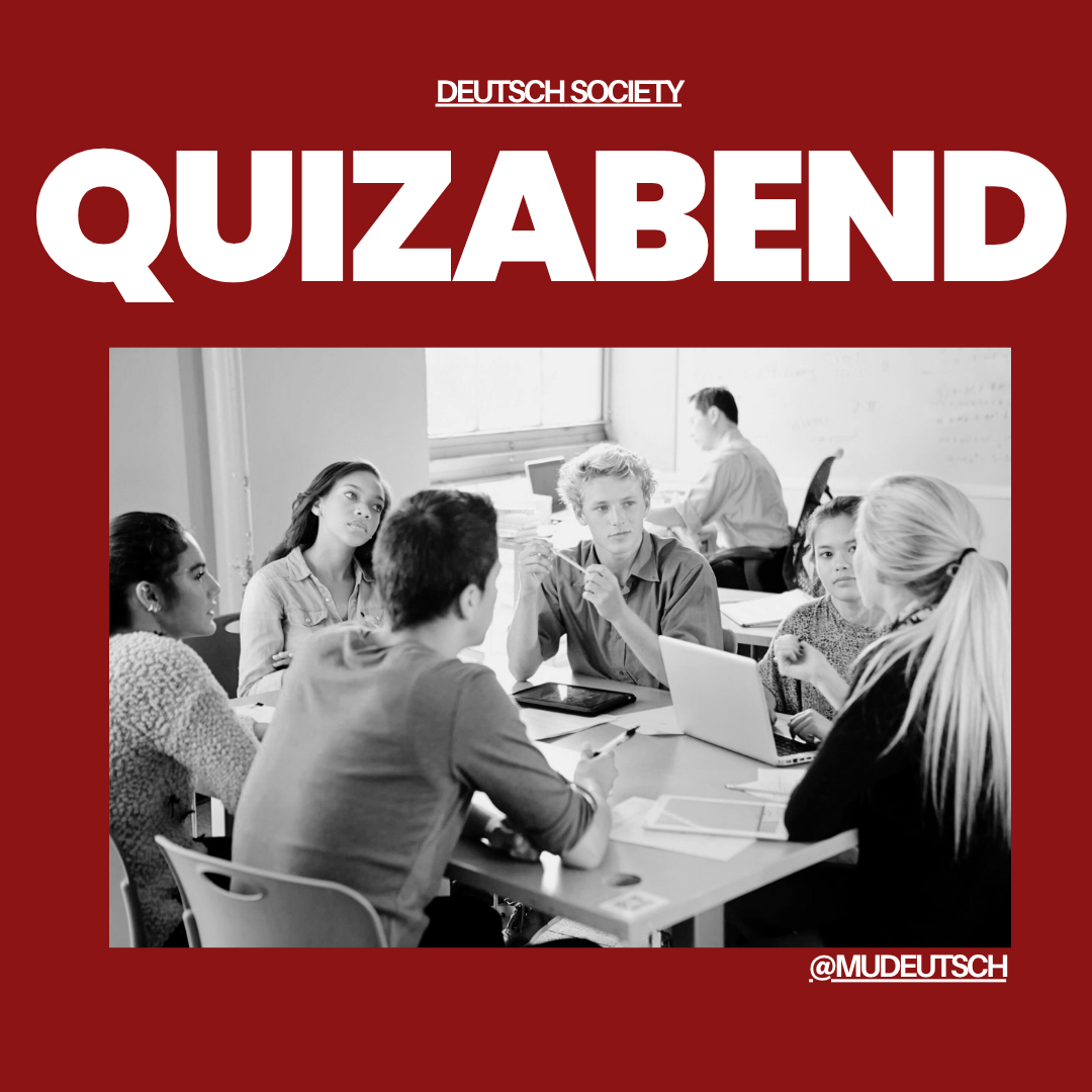 Quizabend (quiz night) is a night to test your knowledge on German pop culture and general knowledge. Get in groups and work together to win a prize at the end within a great opportunity to work together auf Deutsch!