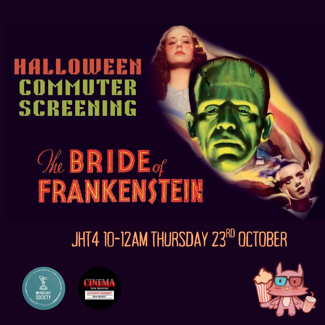 Location: JH Tutorial room 4Hello everyone, we have a commuter screening!! On Thursday 23rd of October from 10-12 join in JH Tutorial room 4 to watch The Bride of Frankenstein with the biology society. We are really excited for this first commuter event of the year and look forward to seeing all of you there. See you at the movies! |