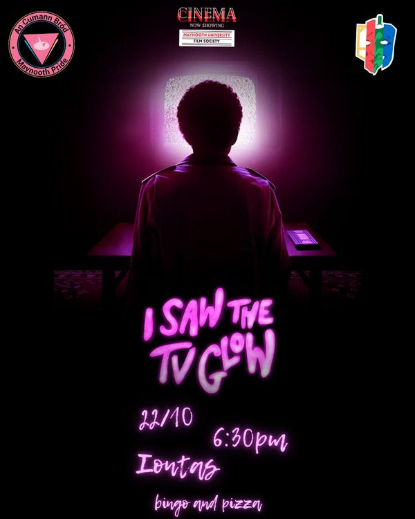 Next week will be our big halloween screening. We will have pizza and a bingo related to the film and snacks so join us with the pride society and drama society to watch I saw the TV Glow on Wednesday in Iontas at 18:30!! I Saw the TV Glow is a 2024 American psychological horror drama film written and directed by Jane Schoenbrun. It stars Justice Smith and Jack Haven[a] as two troubled high school students whose connection to their favorite television show drives them to question their reality and identities. The supporting cast includes Helena Howard, Lindsey Jordan, Conner O'Malley, Emma Portner, Ian Foreman, Fred Durst, and Danielle Deadwyler.