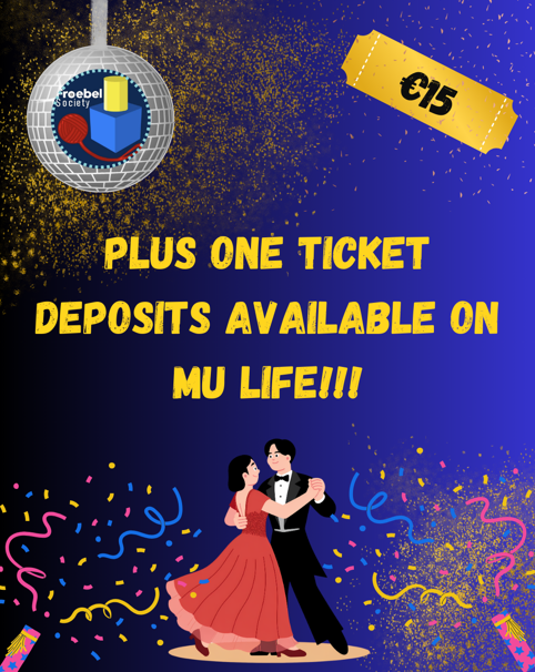 We are collecting €15 deposit through MU Life. Bookings will close by the second week of March. You MUST be a member of the Froebel society to pay you deposit. The plus one does not have to be registered as you can buy their ticket. We will be checking tickets at the door and names.
