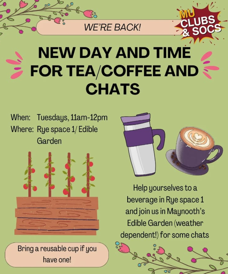 Tea, coffee, and chat is back for semester 2, collaborating with Environmental, Rovers, Psychology and Saint vincent de Paul.