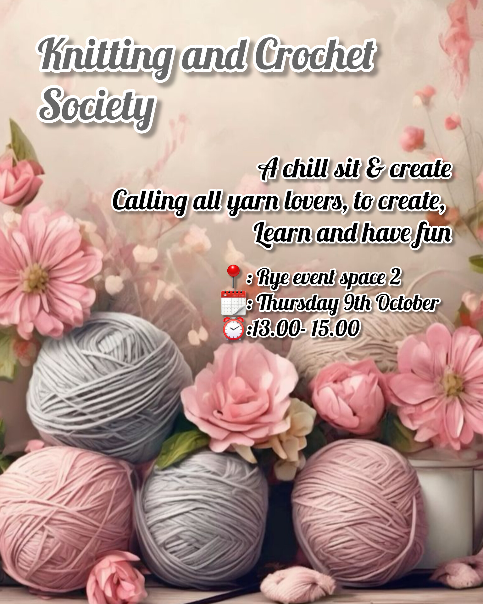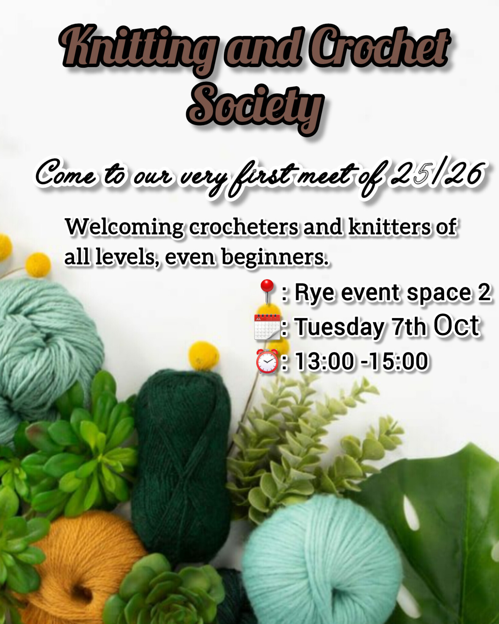 We’re a chill, welcoming group that gets together to create, chat, and make cool (and cozy) things. Whether you want to knit a scarf, crochet a cute plushie, or just de-stress with some good vibes and good company, we’ve got you covered. No experience? No problem! We’ll help you get started. Zero pressure, loads of fun! Join our society and see what we are all about - you might just get hooked!