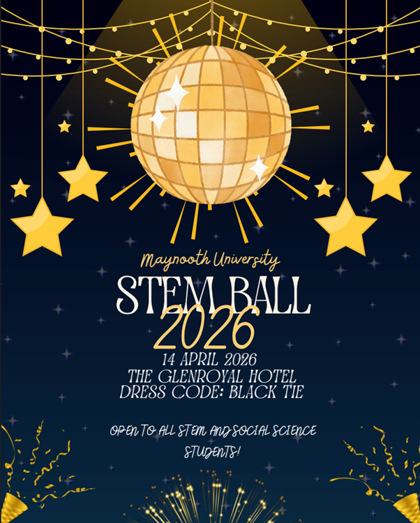 "We are having a STEM ball open to all STEM and social science students! This event is a collaboration between Psychology society, Data Science society, Maths-Physics society and Geography society. The ball will take place April 14th at the Glenroyal Hotel, Maynooth.You must be in attendance of Maynooth University to purchase tickets. Attendees must be over 18 to attend the ball. Valid ID will be required during ticket sales and upon entry to the venue. No refunds will be issued unless the event is cancelled.The Maynooth University societies involved are not responsible for any ticket resale or exchange, this is done at your own risk. Tickets are registered to the ticket holder, so the Psychology Society must be notified in advance of the event in the case of any ticket transfers, so that ticket holder details can be updated.There will be photography and potential videography taking place throughout the night. If you do not consent to your photograph being taken, please inform a member of the relevant societies and we will do our best to accommodate you. Due to the large crowd setting your request cannot be guaranteed, but all efforts possible will be made.The involved societies reserve the right to refuse entry or remove any attendee from the event should there be any disorderly behaviour or a lack of compliance with venue rules or security requirements.Attendance is at the attendees own risk. The involved societies, venue, security and any other involved parties cannot be held responsible for any loss, theft or damage to personal property during the event, nor can they be held responsible for any injury or incidents that may occur over the course of the night (within the limits of the law).By confirming your ticket purchase you are confirming that you have read, understood and agree to all of the above."